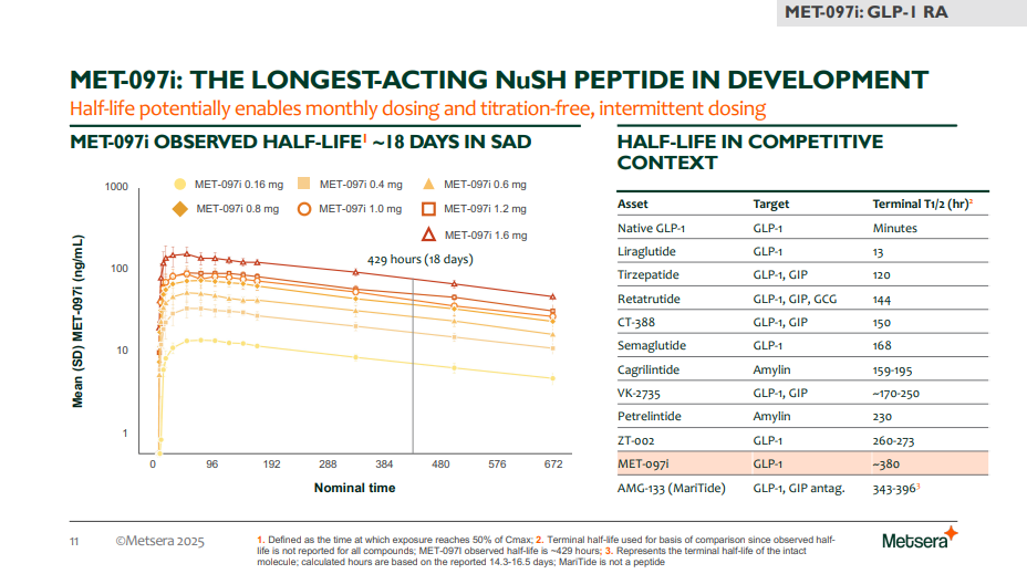 → Half-life potentially enables monthly dosing and titration-free, intermittent dosing