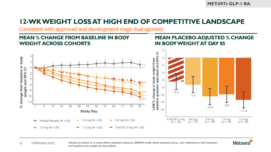 » 12-wk wt loss consistent with approved & development-stage dual agonists